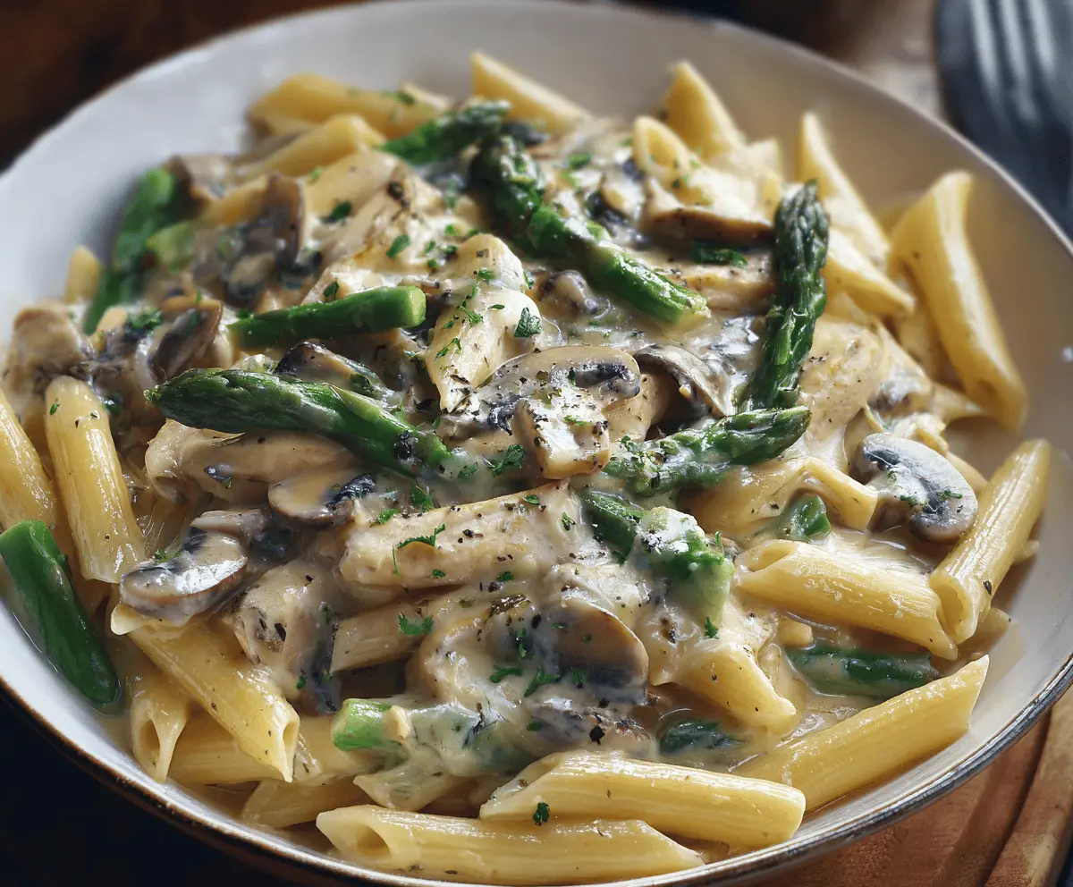 Creamy Mushroom Asparagus Chicken Penne Recipe