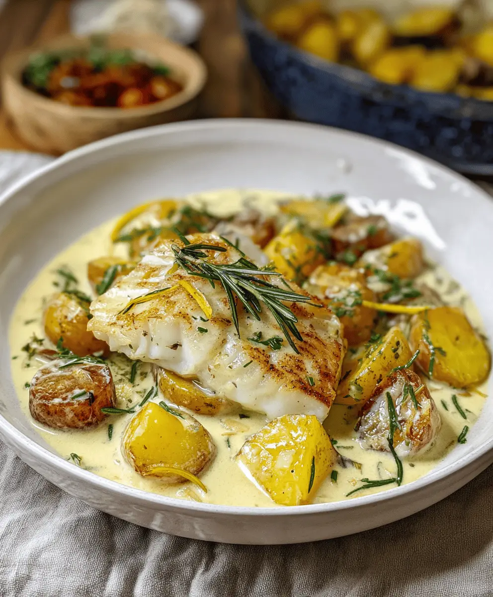 Once the cod is cooked, it’s time to plate! Serve the cod over the beautiful roasted potatoes and generously spoon the creamy rosemary sauce on top. A sprinkle of freshly chopped parsley adds a nice touch.