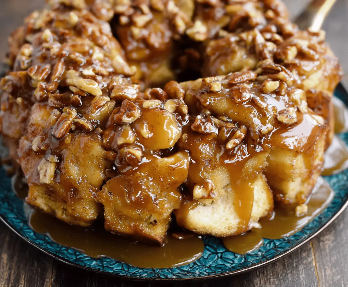 Your Easy Caramel Apple Pecan Monkey Bread is ready! Serve it warm, and if you like, drizzle more caramel sauce over the top or add a scoop of vanilla ice cream for an extra treat. Enjoy digging in!