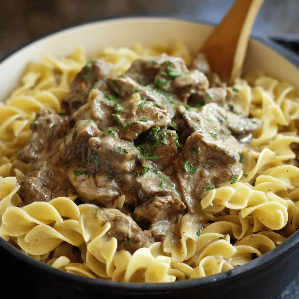 Once it’s all done, taste and adjust the seasoning as needed. Serve the beef stroganoff over the cooked egg noodles or pasta. Don’t forget to sprinkle some fresh parsley on top for a pop of color!