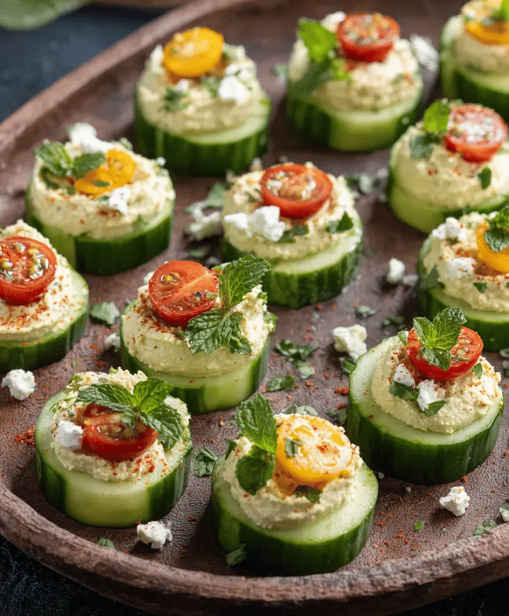 Absolutely! If you’re not a fan of cucumber, try using celery sticks, bell pepper slices, or even radishes. Each will provide a crunchy texture and a refreshing taste for your hummus bites!