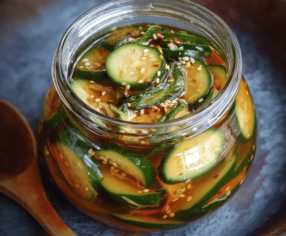 Sprinkle toasted sesame seeds on top as a lovely garnish. You can enjoy the pickles right away, or for even better flavor, refrigerate them for about 30 minutes to allow the tastes to marry. These pickles make a refreshing and zesty addition to any meal!