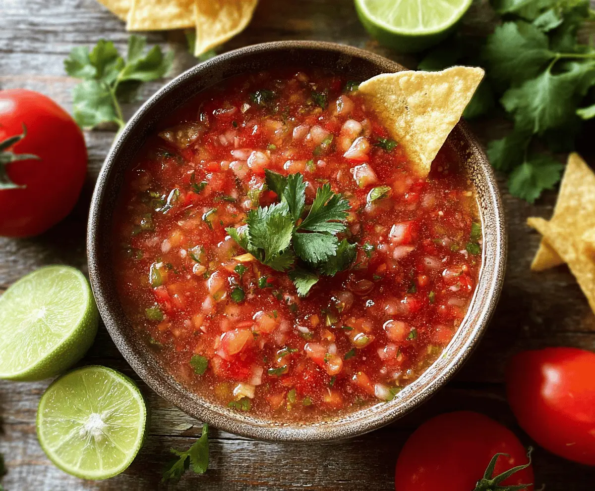 This fresh tomato salsa is a burst of garden flavor! Made with juicy tomatoes, crisp onions, and zesty lime juice, it’s perfect for dipping chips or topping tacos.