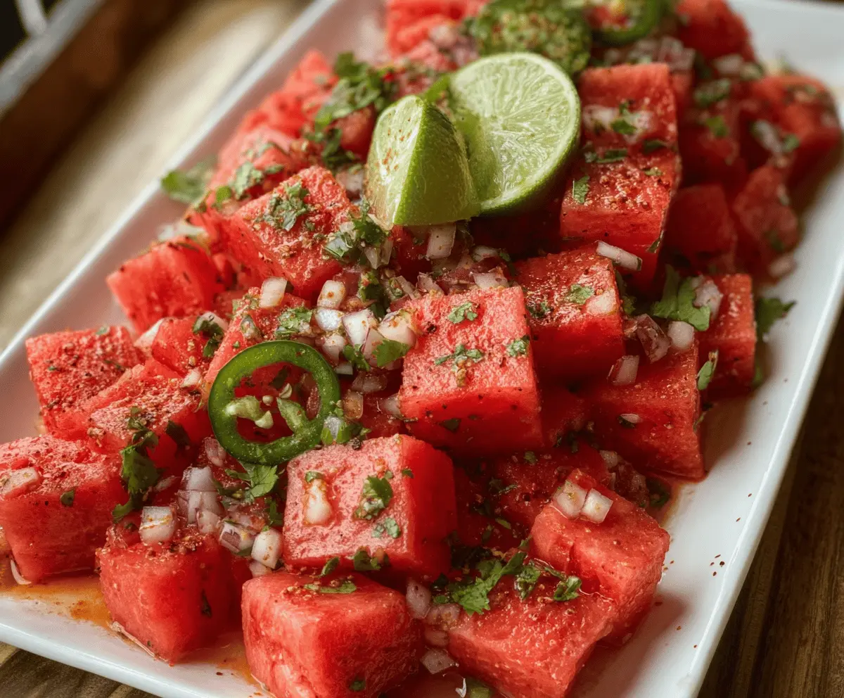 Enjoy your vibrant, spicy watermelon salad with a delightful lime and cilantro twist!